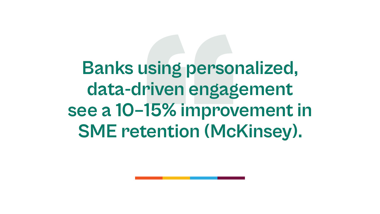 This approach is not about pushing new products, but about enabling SMEs to make better decisions. According to McKinsey, banks that use data-driven personalization see a 10–15% boost in client retention. For community banks competing against larger institutions, this is a low-cost but powerful way to deliver a competitive advantage.